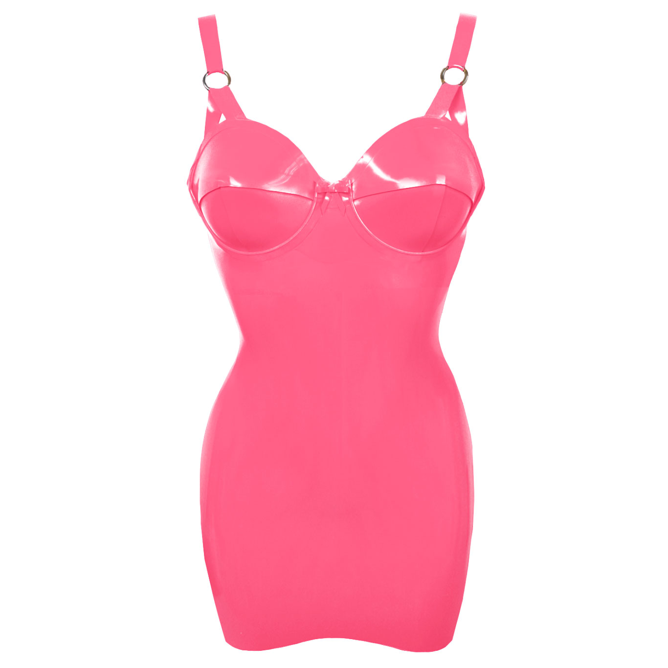 Plain Fifties Cup Mini Dress w/ Single Trim Bra Cups in Vibrant Bright Pink / Vibrant Bright Pink