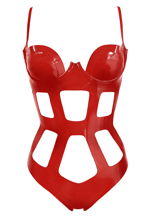 Plain Full Cage Cutout Body w/ Paris Layered Cups in Supatex Red