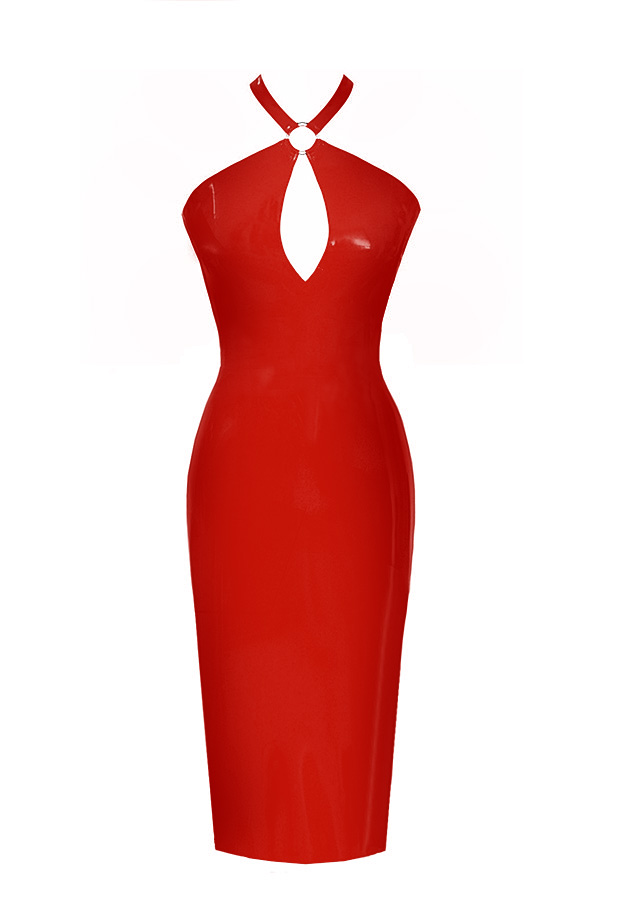 Plain Encounter X Neck Pencil Dress in Supatex Red