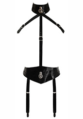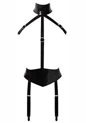 Plain Restricted Playsuit w/ Collar with 1 D-ring / Belt with 1 D-ring / 4 Detachable Suspenders in Supatex Black