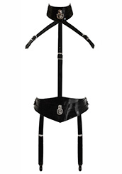 Plain Restricted Playsuit w/ Paris Layer Collar / Paris Layered Belt / 4 Detachable Suspenders in Supatex Black