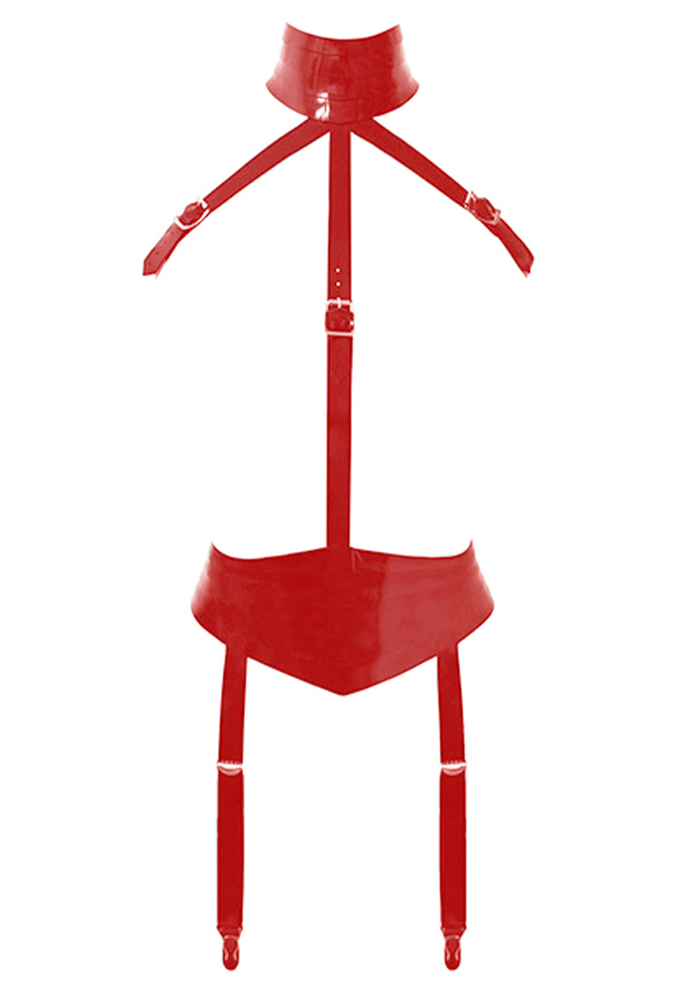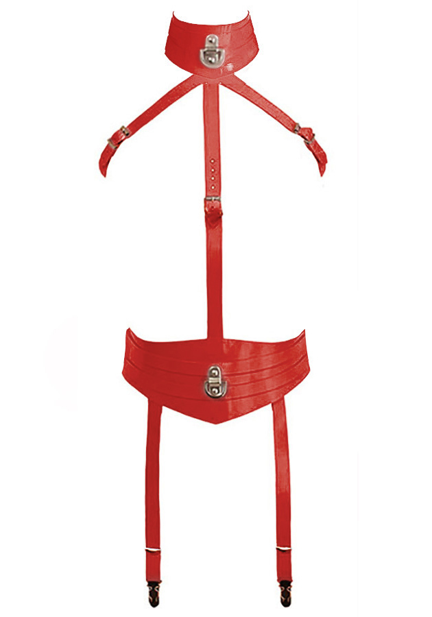 Plain Restricted Playsuit w/ Collar with 1 D-ring / Belt with 1 D-ring / 4 Detachable Suspenders in Red