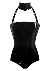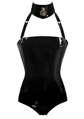 Plain Restricted Strapless Body w/ Paris Layered Collar and 4 Adjustable Suspenders / Mid Cut Leg in Supatex Black