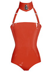 Plain Restricted Strapless Body w/ D-ring Collar and 4 Adjustable Suspenders / Mid Cut Leg in Supatex Red