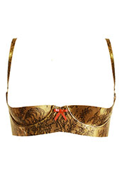 Printed 1/2 Cup Bra w/ Bow in Antique Gold Lace / Supatex Red