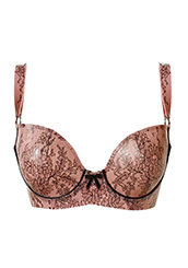 Printed Wonder Cup Bra w/ Single Trim Bra Cups in Semi-Trans Pink Lace / Semi-Trans Pink Lace