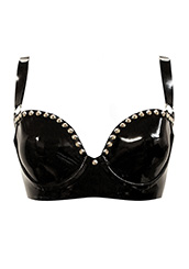 Plain Wonder Cup Bra w/ Silver Studs Trim in Supatex Black / silver studs