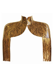 Printed Restricted Cape w/ Fringe in Antique Gold Lace