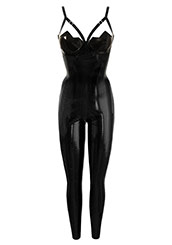 Plain Restricted ZigZag Cup Catsuit w/ Back Zip / Lube in Supatex Black
