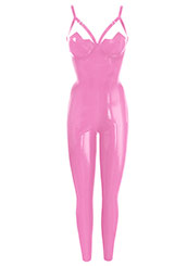 Plain Restricted ZigZag Cup Catsuit w/ Back Zip / Lube in Bubblegum Pink