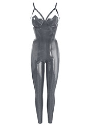 Plain Restricted ZigZag Cup Catsuit w/ Back Zip / Lube in Pearlsheen Pewter