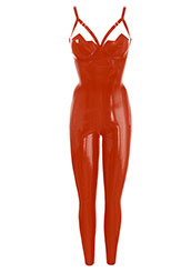 Plain Restricted ZigZag Cup Catsuit w/ Back Zip / Lube in Supatex Red