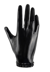 Plain Handmade Wrist Gloves w/ Deluxe 2 Line Black Crystals in Supatex Black / Black Crystals