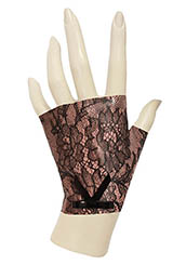 Printed Knuckle Gloves w/ Single Trim / Bow in Semi-Trans Peach Lace / Supatex Black