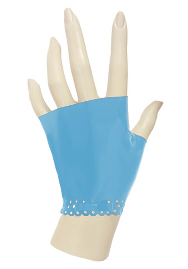Plain Knuckle Gloves w/ Filigree Lace Trim / Bow in Supatex Light Blue / Supatex Light Blue