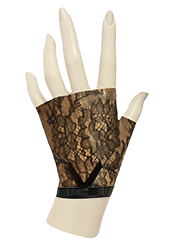Printed Knuckle Gloves w/ Reverse Filigree Trim in Supatex Semi-Trans Black Leopard / Supatex Black