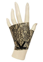 Plain Knuckle Gloves w/ Filigree Lace Trim / Bow in Black / Supatex Black