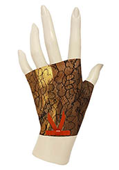 Printed Knuckle Gloves w/ Bow in Antique Gold Lace / Red