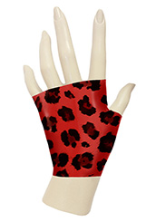 Printed Knuckle Gloves w/ Reverse Filigree Trim / Bow in Supatex Semi-Trans Black Leopard / Supatex Black