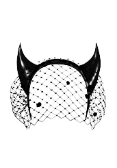 Plain Alice Band w/ Veil / Devil Horns in Supatex Black / Black