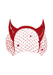 Plain Alice Band w/ Veil / Devil Horns in Red