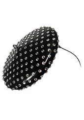 Plain Beret w/ Silver Studs in Supatex Black / silver studs