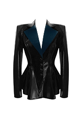 Plain Encounter Peplum Jacket w/ Contrast Lapel in Supatex Black / Metalic Petrol Black