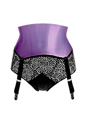 Flower Filigree/Plain Restricted Super High Waisted Panel Briefs w/ 4 Suspenders in Semi-Trans Lilac / Supatex Black