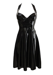Plain Halter Neck Candy Cup Flare Dress in Black