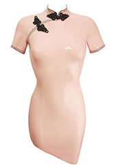 Plain Lady P Cheongsam Pencil Dress w/ Filigree Trim in Baby Pink / Black