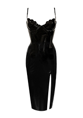 Plain Restricted Scallop Cup Slit Dress in Supatex Black