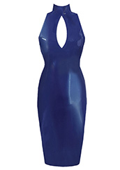 Plain Shoulderless Joy Pencil Dress w/ Short Keyhole in Pearlsheen Azure