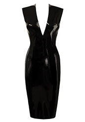 Plain Sleeveless Linde Pencil Dress w/ Short V in Supatex Black
