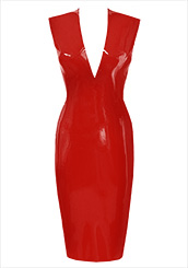 Plain Sleeveless Linde Pencil Dress w/ Mid V in Supatex Red