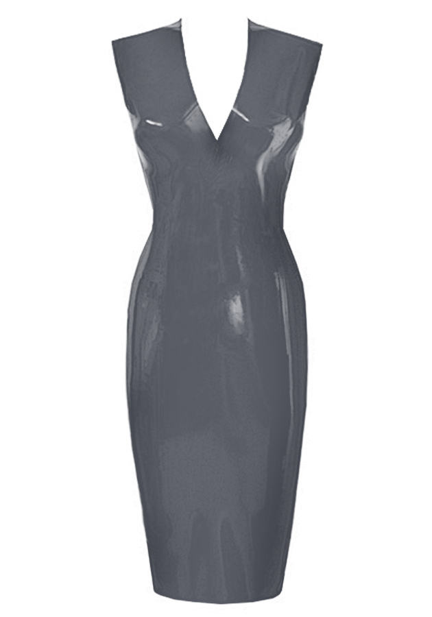 Plain Sleeveless Linde Pencil Dress w/ Mid V in Pearlsheen Pewter
