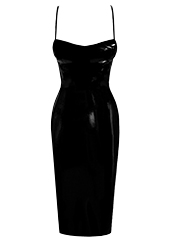 Plain Strappy Peach Pencil Dress in Supatex Black