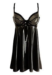 Plain Baby Doll Dress w/ Ribbon Thread Bra Trim / Medium Bow in Supatex Semi-Trans Black / Supatex Black / Black