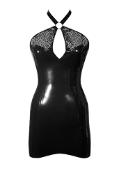 Plain/Flower Filigree Encounter X Neck Mini Dress in Supatex Black