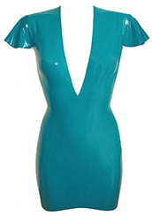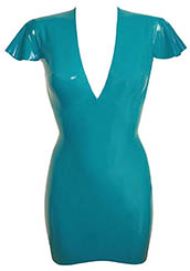 Plain Linde Mini Dress w/ Short V Neck in Turquoise