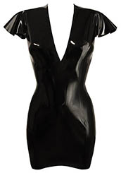 Plain Linde Mini Dress w/ Short V Neck in Black