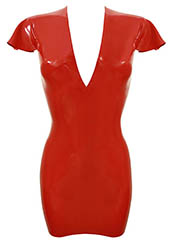 Plain Linde Mini Dress w/ Short V Neck in Red