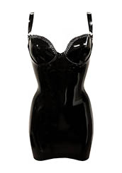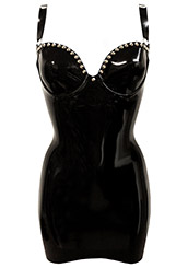 Plain Wonder Cup Mini Dress w/ Silver Studs Trim in Supatex Black / silver studs