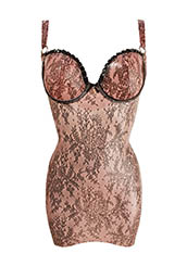 Printed Wonder Cup Mini Dress w/ Frill Trim Bra Cups in Semi-Trans Pink Lace / Black