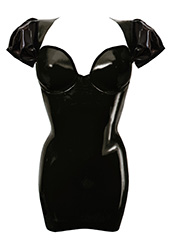 Plain Wonder Cup Puff Sleeve Mini Dress w/ Single Trim Bra Cups / Single Sleeve Trim in Supatex Black / Supatex Black