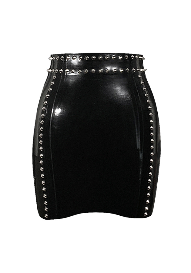 Plain Studded Mini Skirt w/ Silver Studs in Black