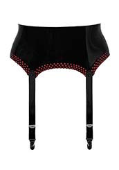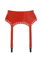 Plain 4 Suspender Belt w/ Filigree Trim in Supatex Black / Supatex Red