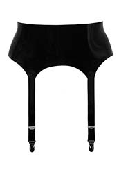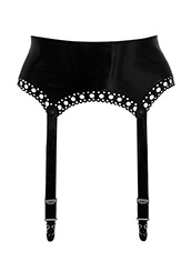 Plain 4 Suspender Belt w/ Filigree Lace Trim in Supatex Black