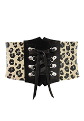 Printed Cincher Belt w/ Laces in White Leopard / Supatex Black