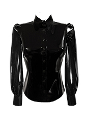 Plain Puff Sleeve Blouse w/ Kitty Collar in suptex black