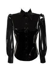 Plain Puff Sleeve Blouse w/ Smart Collar in suptex black